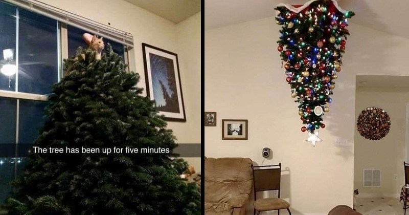 Here are nine adorable videos of cats climbing attacking and ruining Christmas trees.